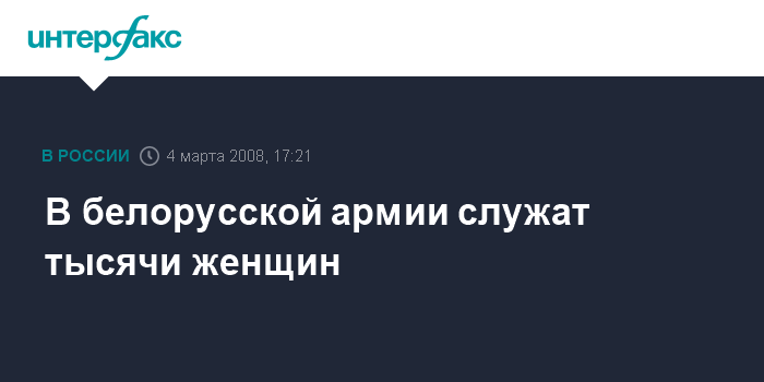 Минск. 4 марта. INTERFAX.RU - По состоянию на 1 февраля 2008 г. в белорусской армии служат более 4000 женщин: 274 офицера, более 1000 прапорщиков и еще около 2700 проходят службу по контракту на должностях солдат и сержантов, сообщили "Интерфаксу" в пресс-службе министерства обороны Белоруссии.