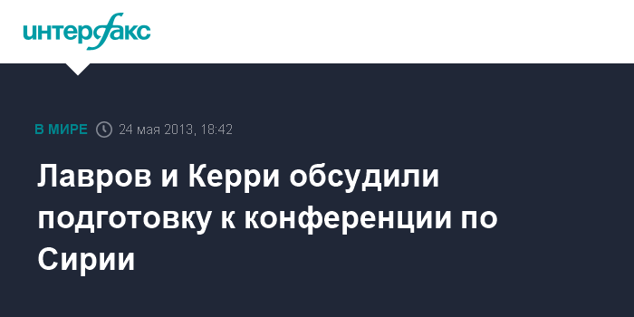 Как сообщил ранее в пятницу "Интерфаксу" источник в МИД, Лавров и Керри проведут двустороннюю встречу в Париже 27 мая.