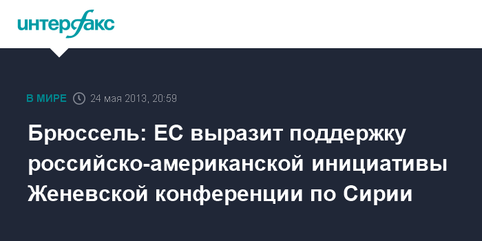 Брюссель: ЕС выразит поддержку российско-американской инициативы Женевской конференции по Сирии