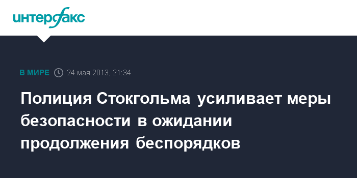 Между тем, стражи порядка ожидают к вечеру новой волны восстаний. Погромы в Стокгольме начались в 19 мая в пригороде Хюсбю, на северо-западе шведской столицы.