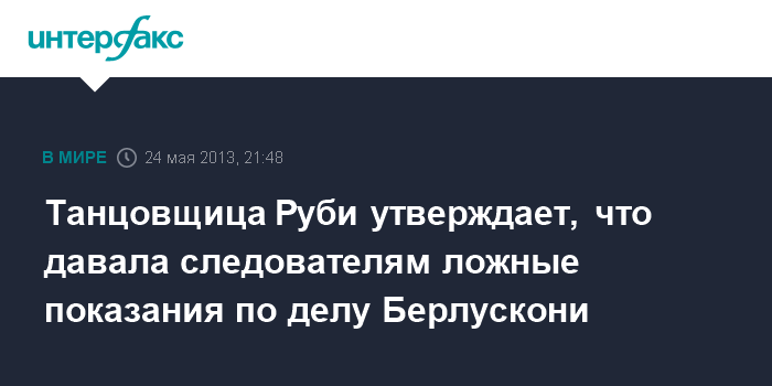 Танцовщица Руби утверждает, что давала следователям ложные показания по делу Берлускони