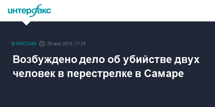 Москва. 26 мая. INTERFAX.RU - Уголовное дело возбуждено по факту гибели двух участников перестрелки с применением травматического оружия в Самаре, сообщает в воскресенье сайт Следственного комитета РФ.