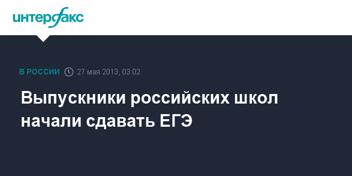 Там напомнили, что в 2013 году 27 мая состоится экзамен по русскому языку, 30 мая - по информатике, биологии и истории, 3 июня - по математике, 6 июня - иностранные языки и физика, 10 июня - обществознание и химия. Основной этап завершится 13 июня ЕГЭ по географии и литературе.