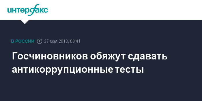 Москва. 27 мая. INTERFAX.RU - Совет по противодействию коррупции при президенте РФ в начале июня соберется для обсуждения вопроса о введении антикоррупционных тестов для нынешних и будущих чиновников, пишут "Известия" в понедельник.