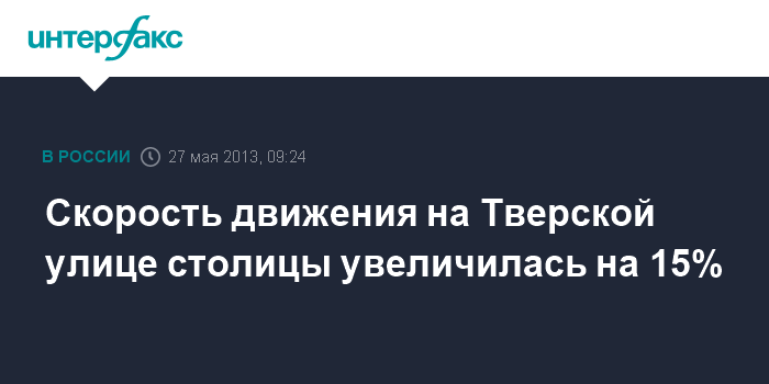 Скорость движения на Тверской улице столицы увеличилась на 15%