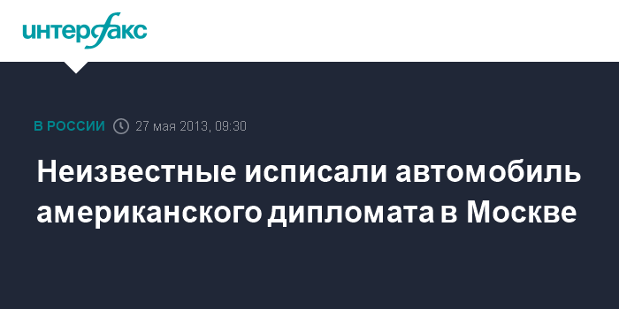 Москва. 27 мая. INTERFAX.RU - Вандалы разрисовали машину американскому дипломату, сообщил "Интерфаксу" в понедельник источник в правоохранительных органах.