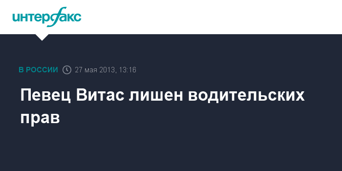 Москва. 27 мая. INTERFAX.RU - Мировой судебный участок 414 Останкинского района лишил певца Витаса (Виталия Грачева) водительского удостоверения сроком на 1,5 года за отказ пройти освидетельствование на состояние алкогольного опьянения после ДТП.