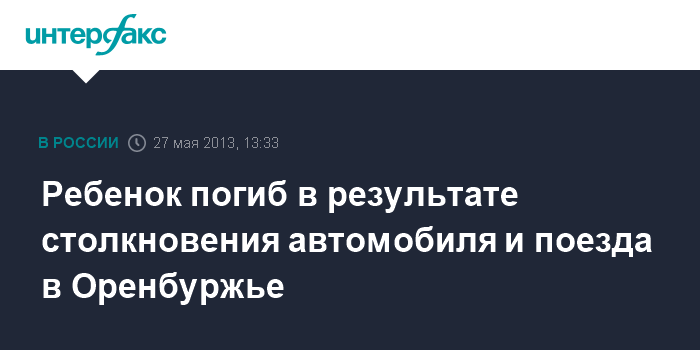 Оренбург. 27 мая. INTERFAX.RU - На неохраняемом железнодорожном переезде в Оренбургской области в понедельник произошло столкновение поезда и легкового автомобиля, есть жертва.