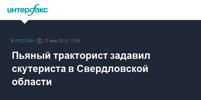 Екатеринбург. 27 мая. INTERFAX.RU - В селе Килачевском Ирбитского района Свердловской области пьяный тракторист в понедельник насмерть задавил 19-летнего водителя скутера, сообщает пресс-служба ГИБДД Свердловской области.