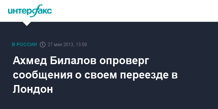 Москва. 27 мая. INTERFAX.RU - Бывший вице-президент ОКР, российский бизнесмен Ахмед Билалов категорически опровергает сообщения ряда СМИ о том, что он переехал в Лондон и приобрел там недвижимость.