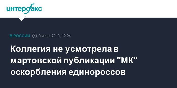 Коллегия не усмотрела в мартовской публикации "МК" оскорбления единороссов