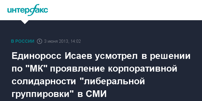 Единоросс Исаев усмотрел в решении по "МК" проявление корпоративной солидарности "либеральной группировки" в СМИ