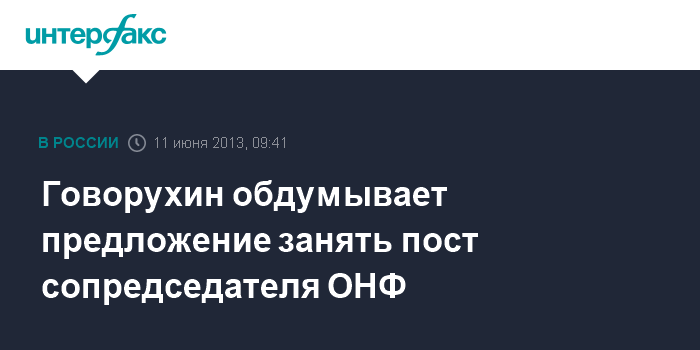Москва. 11 июня. INTERFAX.RU - Режиссер Станислав Говорухин подтвердил, что его кандидатура на пост одного из сопредседателей Общероссийского Народного фронта (ОНФ) действительно обсуждалась, но предложил дождаться окончательного решения съезда.