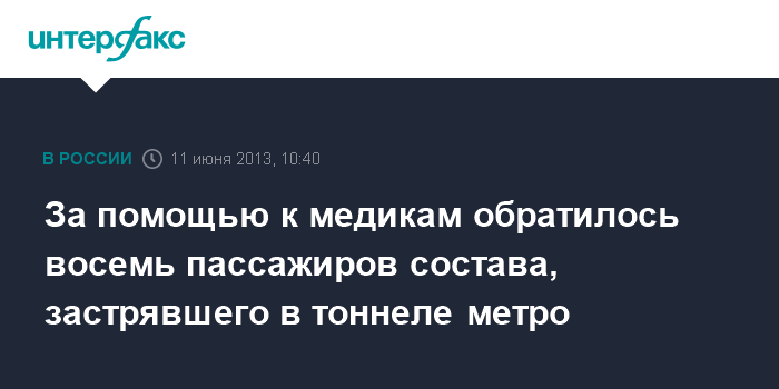 За помощью к медикам обратилось восемь пассажиров состава, застрявшего в тоннеле метро