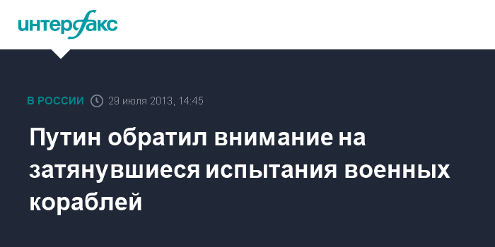 Ново-Огарево. 29 июля. INTERFAX.RU - Президент РФ Владимир Путин подверг критике сроки создания и испытаний ряда надводных и подводных кораблей для ВМФ России.