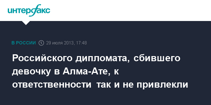 Алматы. 29 июля. INTERFAX.RU - Правоохранительные органы РФ не смогли привлечь к ответственности российского дипломата Андрея Мамаева, сбившего на электромобиле в парке в Алматы девочку Лилию Сметанину.