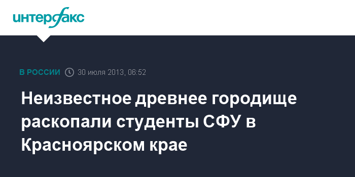 Красноярск. 30 июля. ИНТЕРФАКС-СИБИРЬ - Студенты-археологи Сибирского федерального университета нашли ранее неизвестное укрепленное городище древнеенисейских племен в Красноярском крае, сообщает пресс-служба вуза во вторник.