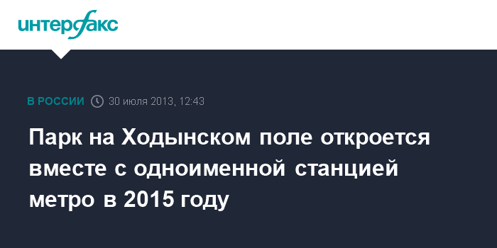 Парк на Ходынском поле откроется вместе с одноименной станцией метро в 2015 году