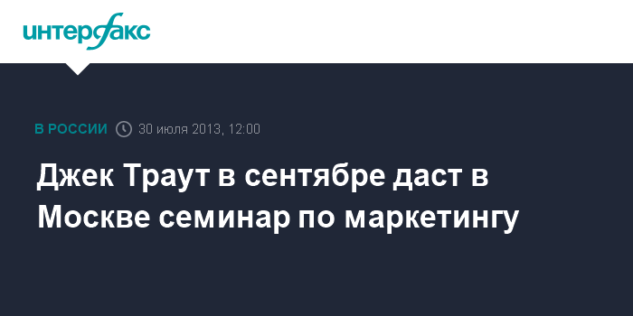Москва. 30 июля. INTERFAX.RU – Маркетолог, основатель и президент консалтинговой фирмы Trout&Partners, автор концепций "Позиционирование" и "Маркетинговые войны" Джек Траут приедет в сентябре в российскую столицу с бизнес-семинаром.
