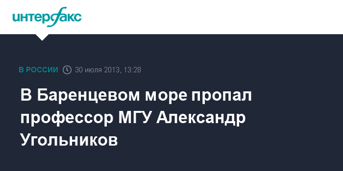 Мурманск. 30 июля. INTERFAX.RU - На восточном побережье Кольского полуострова ведутся поиски отправившегося в одиночное плавание профессора Московского государственного университета (МГУ) Александра Угольникова.