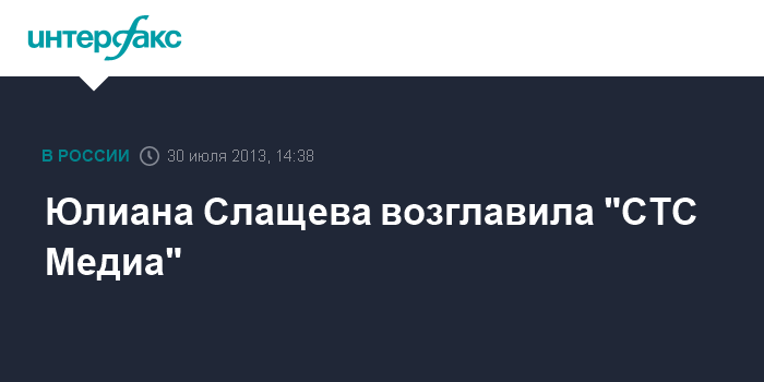 Москва. 30 июля. INTERFAX.RU - Юлиана Слащева назначена новым генеральным директором медиакомпании "СТС Медиа"; Борис Подольский, ранее занимавший эту должность, покинул компанию, сообщили "Интерфаксу" в пресс-службе компании во вторник.