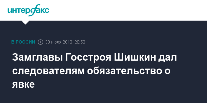 Замглавы Госстроя Шишкин дал следователям обязательство о явке