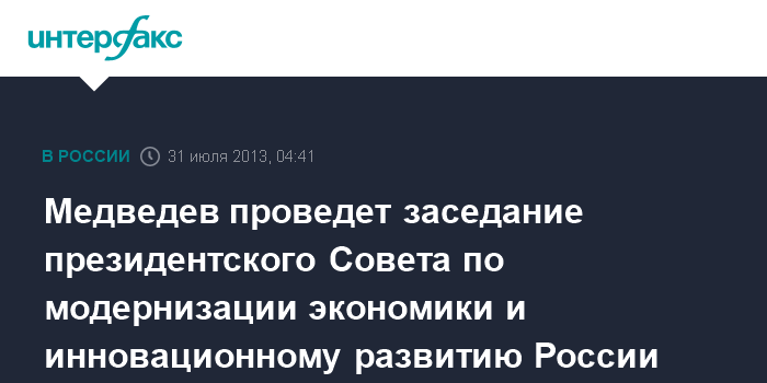 Медведев проведет заседание президентского Совета по модернизации экономики и инновационному развитию России