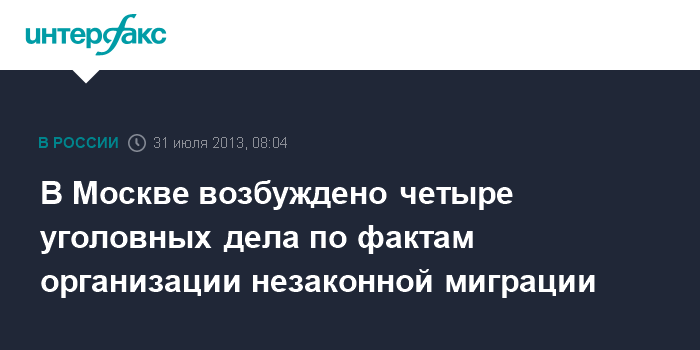 Москва. 31 июля. INTERFAX.RU - Четыре уголовных дела возбуждено за сутки столичной полицией по фактам организации незаконной миграции, сообщили "Интерфаксу" в пресс-службе ГУ МВД России по Москве.
