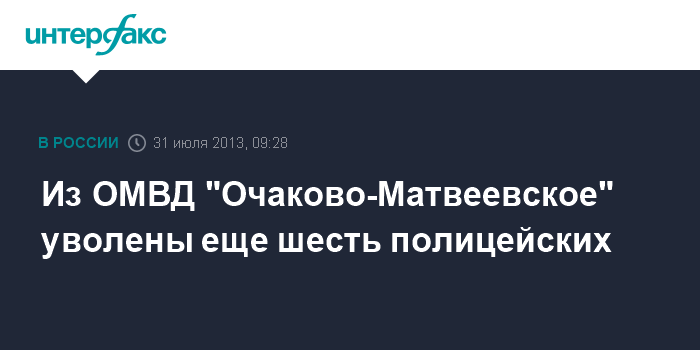 Из ОМВД "Очаково-Матвеевское" уволены еще шесть полицейских