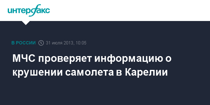 Петрозаводск. 31 июля. INTERFAX.RU - ГУ МЧС Карелии проверяет информацию электронных СМИ о крушении легкомоторного самолета в Суоярвском районе в воскресенье, сообщил "Интерфаксу" источник в ведомстве. "Информация появилась сегодня на местных сайтах. К нам тревожных сигналов по этому поводу не поступало, за помощью в связи с данным инцидентом никто не обращался", - отметил собеседник агентства.