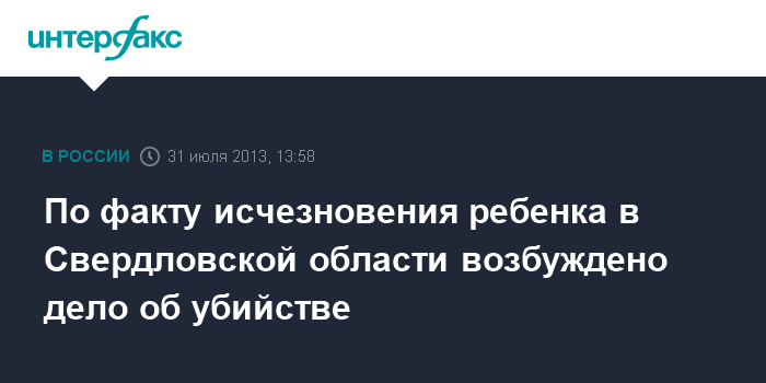 По факту исчезновения ребенка в Свердловской области возбуждено дело об убийстве