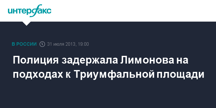 Москва. 31 июля. INTERFAX.RU - Оппозиционер Эдуард Лимонов задержан в районе Триумфальной площади, где проходит несанкционированная акция "Стратегия 31".