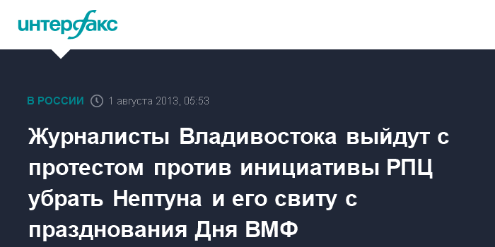 Журналисты Владивостока выйдут с протестом против инициативы РПЦ убрать Нептуна и его свиту с празднования Дня ВМФ