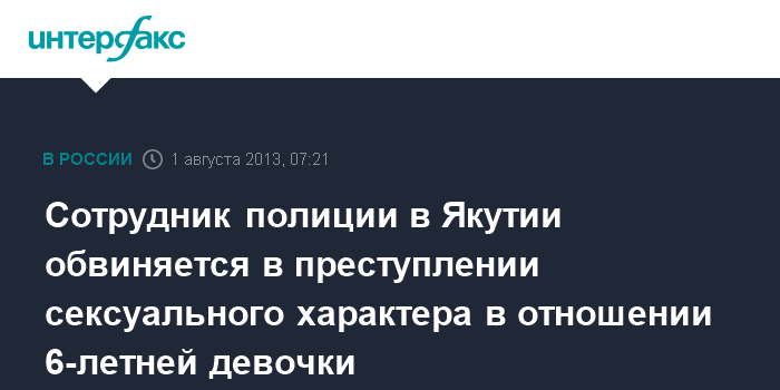 Сотрудник полиции в Якутии обвиняется в преступлении сексуального характера в отношении 6-летней девочки
