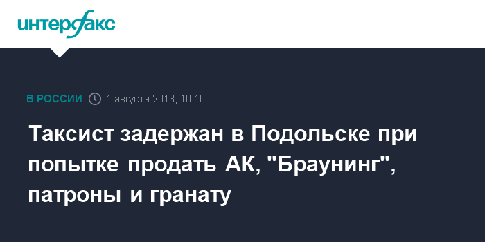 Таксист задержан в Подольске при попытке продать АК, "Браунинг", патроны и гранату