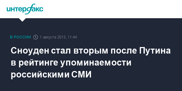 Сноуден стал вторым после Путина в рейтинге упоминаемости российскими СМИ