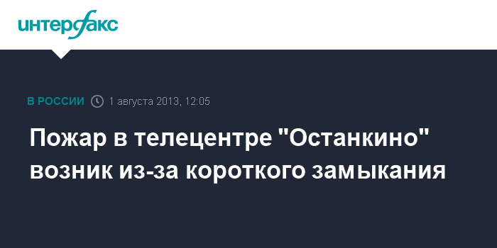 Пожар в телецентре "Останкино" возник из-за короткого замыкания