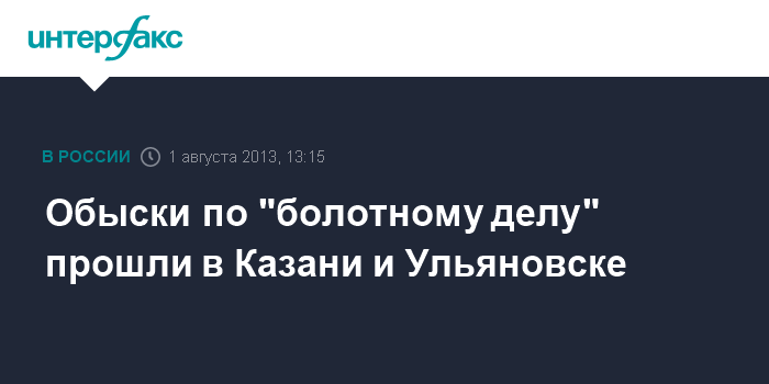 Москва. 1 августа. INTERFAX.RU - Очередные обыски проведены у активистов оппозиции в Казани и Ульяновске в рамках расследования "Болотного дела", изъята агитлитература и листовки с призывами участвовать в марше 6 мая прошлого года, сообщили в СКР.