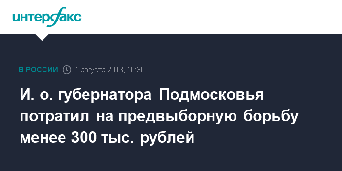 И. о. губернатора Подмосковья потратил на предвыборную борьбу менее 300 тыс. рублей