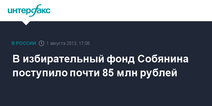 В избирательный фонд Собянина поступило почти 85 млн рублей