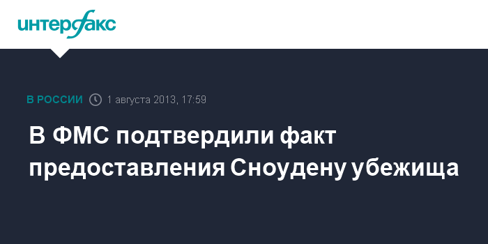 Москва. 1 августа. INTERFAX.RU - В Федеральной миграционной службе (ФМС) РФ официально подтвердили, что бывший сотрудник американских спецслужб Эдвард Сноуден получил временное убежище.