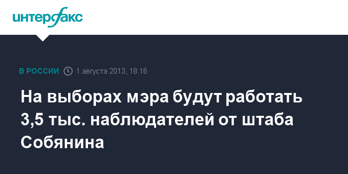 Москва. 1 августа. INTERFAX.RU - За выборами в мэры Москвы 8 сентября со стороны кандидата Сергея Собянина будут следить 3,5 тыс. наблюдателей, сообщил журналистам врио мэра Москвы.