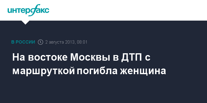 Москва. 2 августа. INTERFAX.RU - Женщина погибла в ДТП с участием маршрутного такси на востоке столицы, сообщили "Интерфаксу" в пресс-службе Управления ГИБДД Москвы.