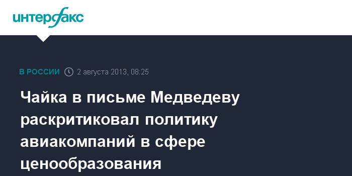 Чайка в письме Медведеву раскритиковал политику авиакомпаний в сфере ценообразования