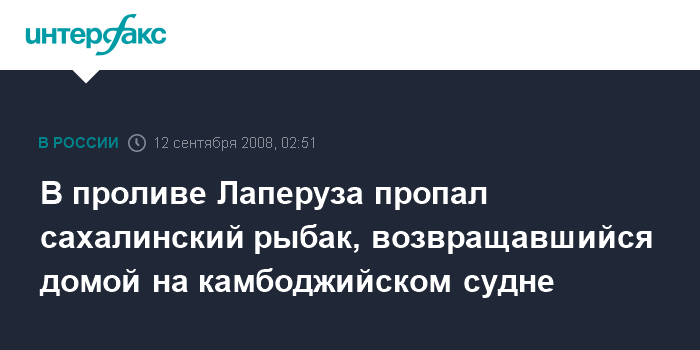 Южно-Сахалинск. 12 сентября. ИНТЕРФАКС-ДАЛЬНИЙ ВОСТОК - Житель Сахалина пропал в четверг утром с борта теплохода "Ковас" под флагом Камбоджи во время его следования из японского порта Отару в сахалинский порт Корсаков.