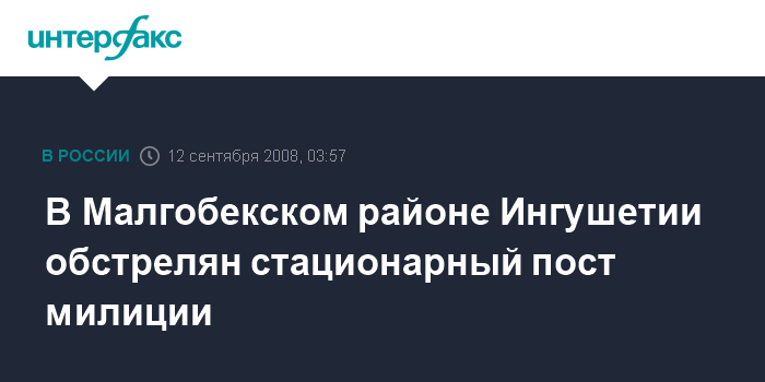 Как сообщил агентству "Интерфакс-Юг" источник в МВД Ингушетии, обстрел произошел примерно в 2:00 мск и продолжался около десяти минут.