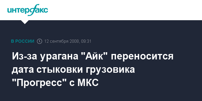"Американская сторона обратилась к нам с просьбой перенести стыковку в связи с эвакуацией американского ЦУПа в Хьюстоне из-за урагана "Айк", - сказал руководитель пресс-службы ЦУПа Валерий Лындин.