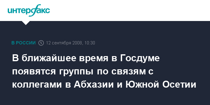Москва. 12 сентября. INTERFAX.RU - В Государственной думе России формируются группы по связям с парламентами Абхазии и Южной Осетии.