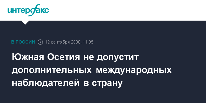 Москва. 12 сентября. INTERFAX.RU - Президент Южной Осетии Эдуард Кокойты заявляет о недопустимости нахождения дополнительных международных наблюдателей на территории республики.