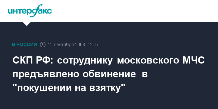 СКП РФ: сотруднику московского МЧС предъявлено обвинение в "покушении на взятку"